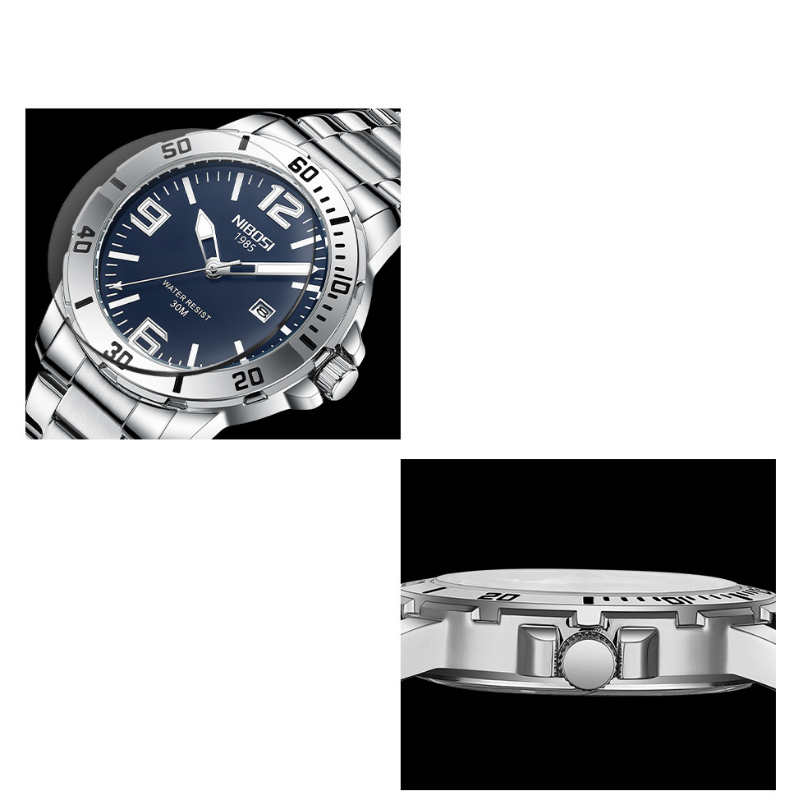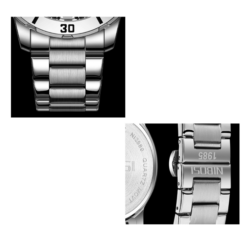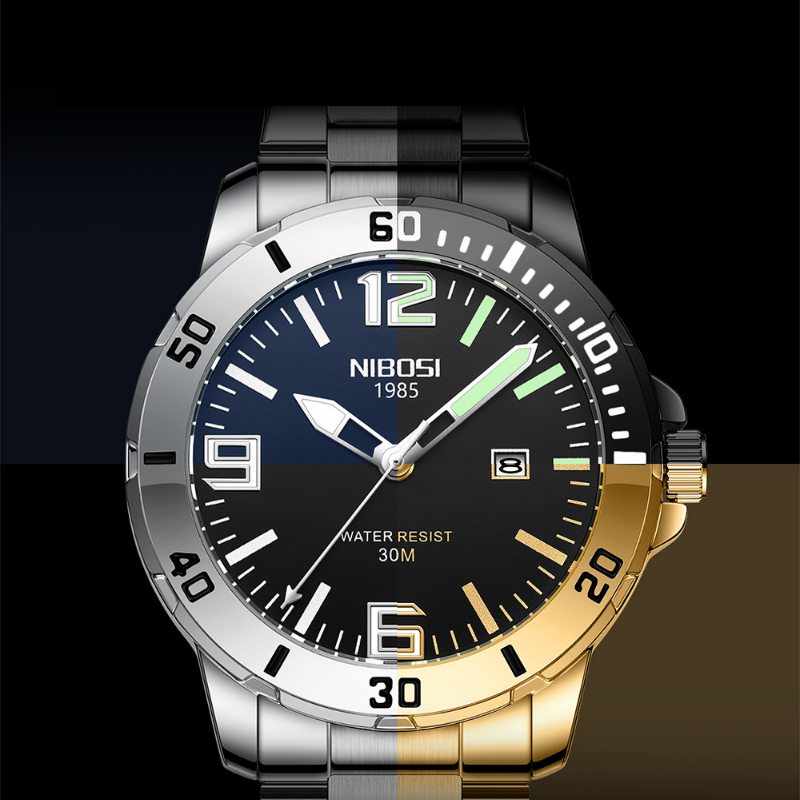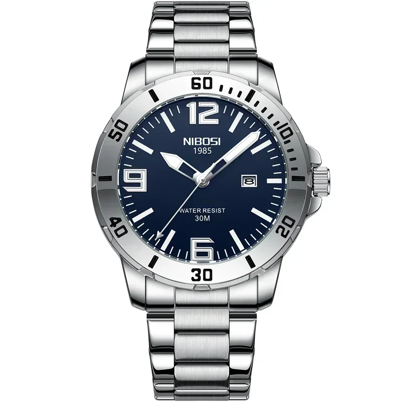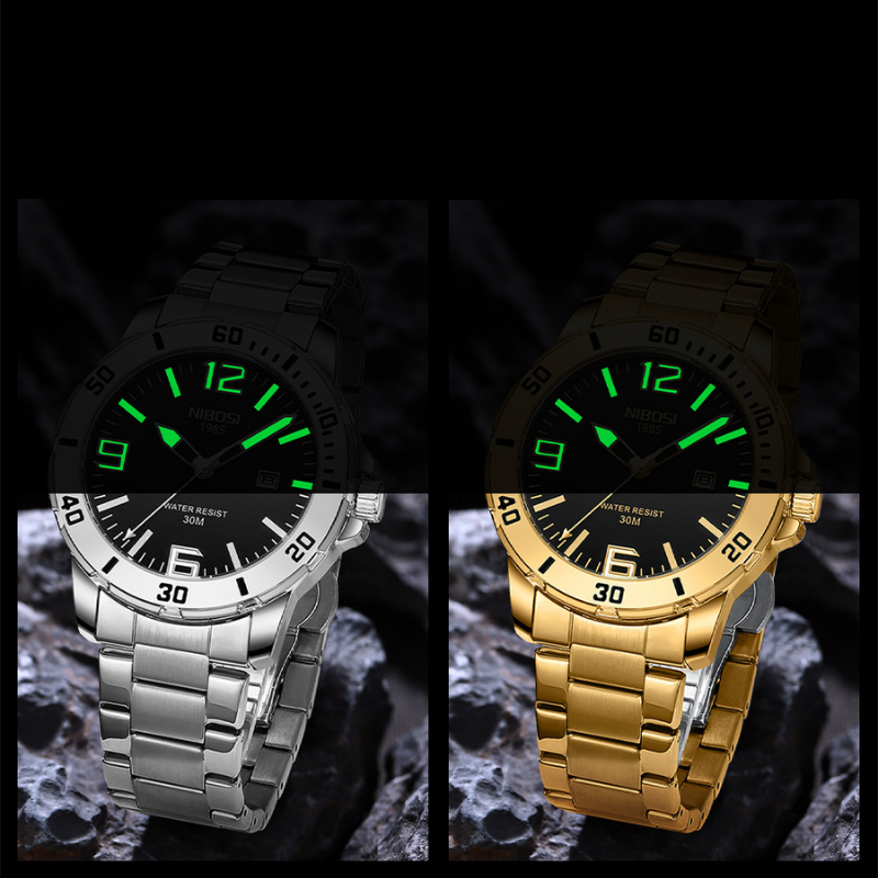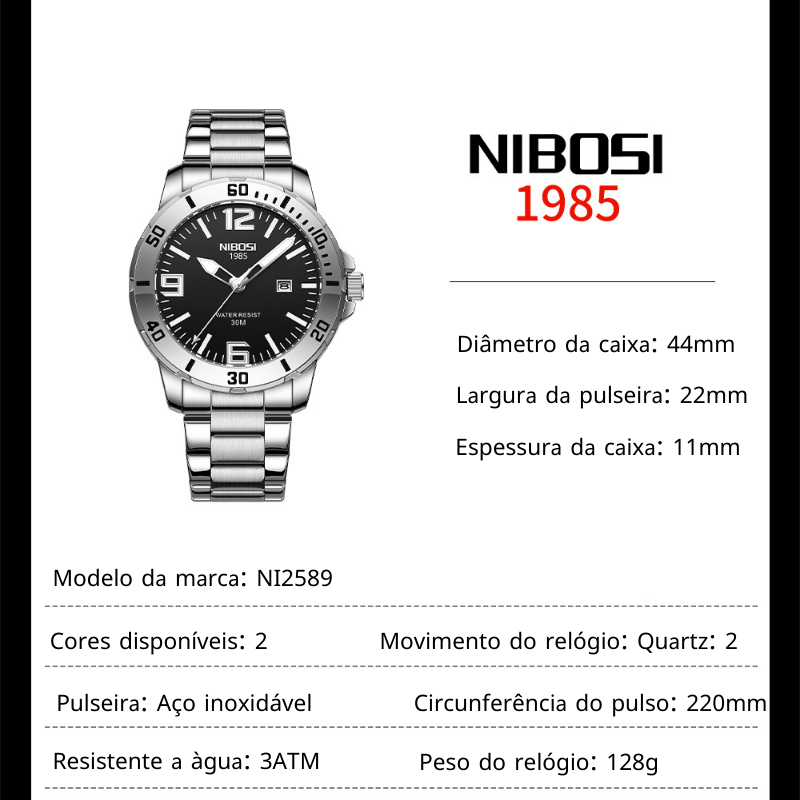 Este é um relógio automático da marca NIBOSI que combina estilo e funcionalidade. Com um design elegante e simples, possui caixa e pulseira feitas de aço inoxidável, garantindo durabilidade e um visual sofisticado. O visor de vidro Hardlex oferece resistência a riscos, enquanto os ponteiros luminosos garantem a visibilidade em ambientes com pouca luz.